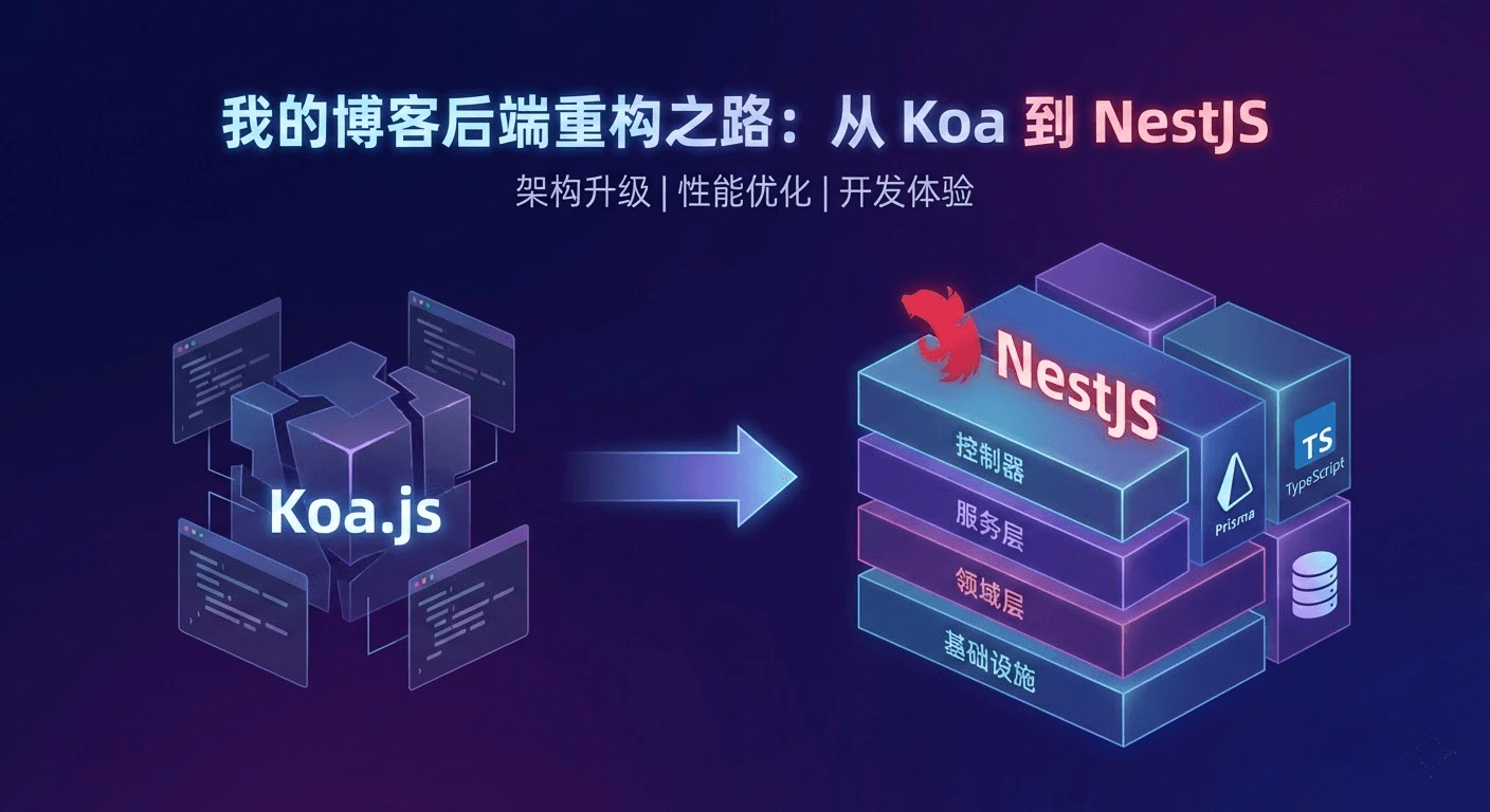 最近把博客的后端服务从 Koa 重构成了 NestJS,整个过程花了大概一周时间。这篇文章就来聊聊为什么要重构,以及重构过程中的一些经验和踩坑记录。